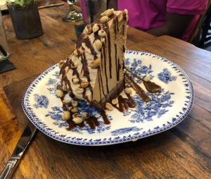 The first restaurant was The RUSTIC, where we had an egg frittata, polenta, avocado toast and a huge “Peanut Butter Pie.” The last got special emphasis because – well see for yourself below. Our bellies said, “you can stop now,” but it was off to Eureka! for a delicious beef, goat cheese and fig jam slider and honey drenched sweet potato fries. Now we were truly full, but the third stop was calling so we waddled over to Tacos and Tequila where we had just that. We were nearly comatose but made it to Baboush for pita bread and dips, chicken shawarma and a beef and lamb dish. Finally, our last tasting was at Bisous Bisous Patisserie for French macarons, where gratefully we were given the choice to take our two pastries to go! It was a great tour – our bellies were full, our capris were bursting and our quest for tasty food was sated! Barbara immediately took a nap when she arrived home, Lee cancelled her dinner plans and Laura refused to even look at food for the rest of the day and night.