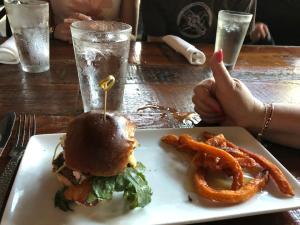 The first restaurant was The RUSTIC, where we had an egg frittata, polenta, avocado toast and a huge “Peanut Butter Pie.” The last got special emphasis because – well see for yourself below. Our bellies said, “you can stop now,” but it was off to Eureka! for a delicious beef, goat cheese and fig jam slider and honey drenched sweet potato fries. Now we were truly full, but the third stop was calling so we waddled over to Tacos and Tequila where we had just that. We were nearly comatose but made it to Baboush for pita bread and dips, chicken shawarma and a beef and lamb dish. Finally, our last tasting was at Bisous Bisous Patisserie for French macarons, where gratefully we were given the choice to take our two pastries to go! It was a great tour – our bellies were full, our capris were bursting and our quest for tasty food was sated! Barbara immediately took a nap when she arrived home, Lee cancelled her dinner plans and Laura refused to even look at food for the rest of the day and night.