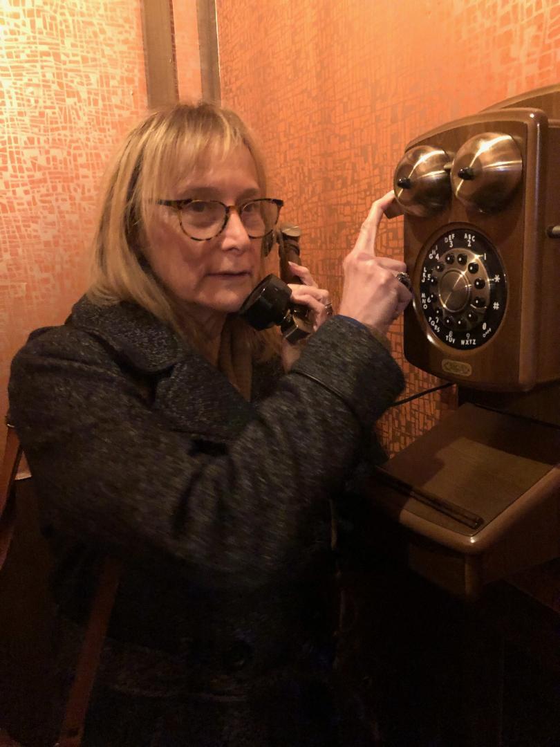 When you enter Prohibition Chicken it looks like any other family-style chicken restaurant. But if you know about the Volstead Room, you get the code from the hostess (we had read it was a secret password but she just said to dial zero; maybe she was new), walk through the telephone booth in the back, pick up the old fashioned phone and dial.