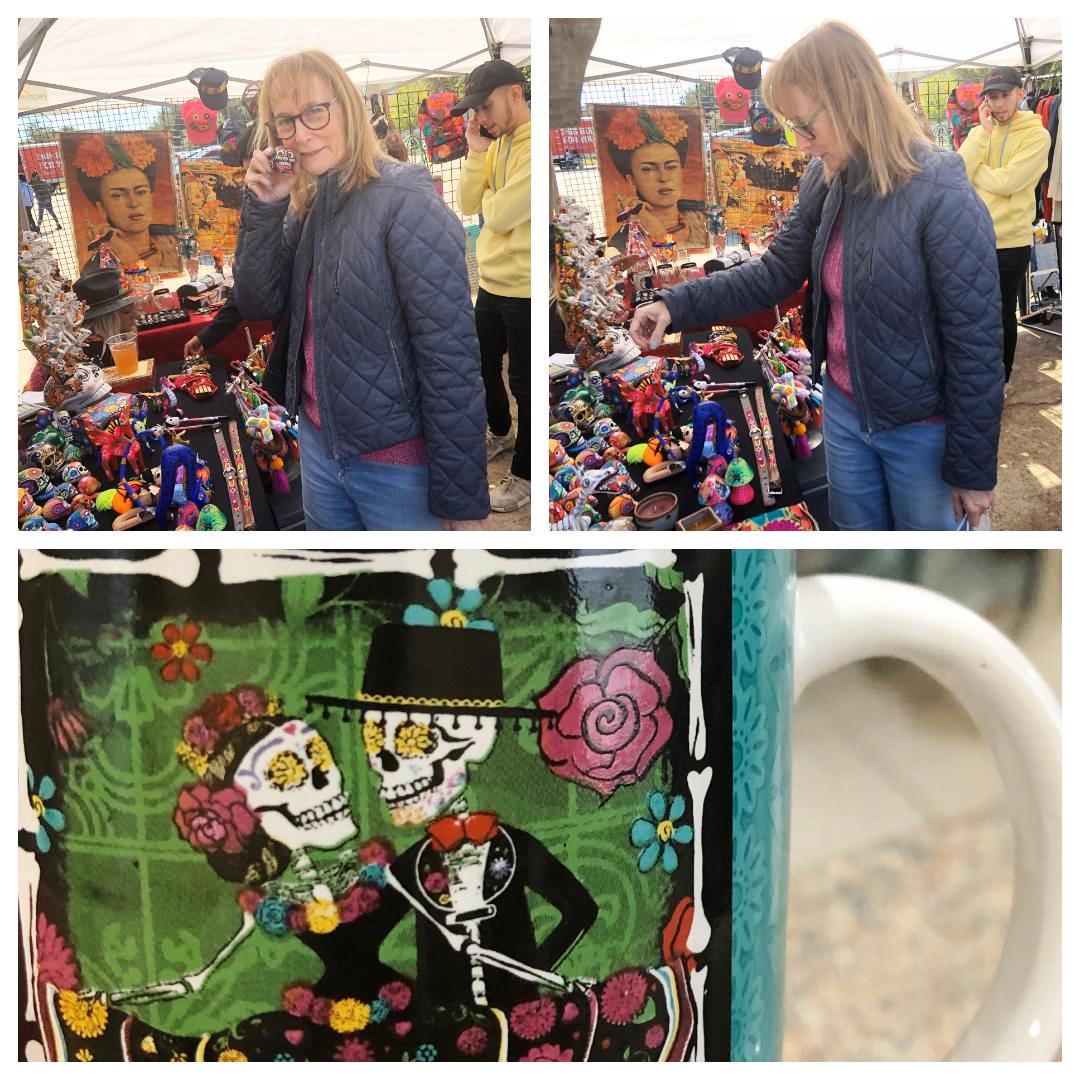 And there were vendors galore. Barbara was “dead” set on buying a skeleton bride and groom but surprisingly none were for sale so she had to make do with a mug showing the “spirited” couple.