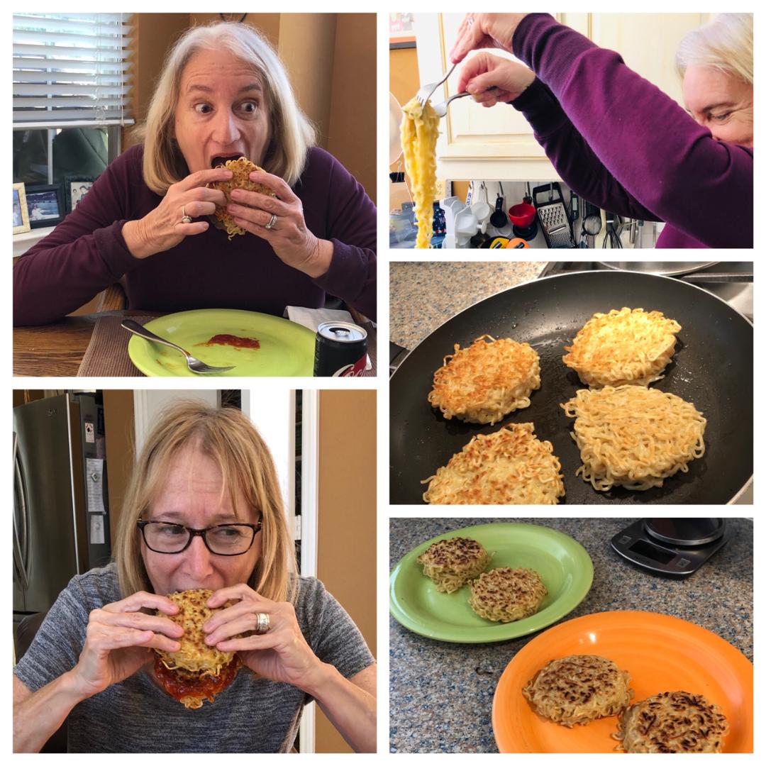 The second mixture was one that we had a load of fun making. It is a ramen burger. Yes, a burger that uses ramen noodles in place of the traditional bun. Although messy, we shared lots of laughs trying to get our mouth around this one.