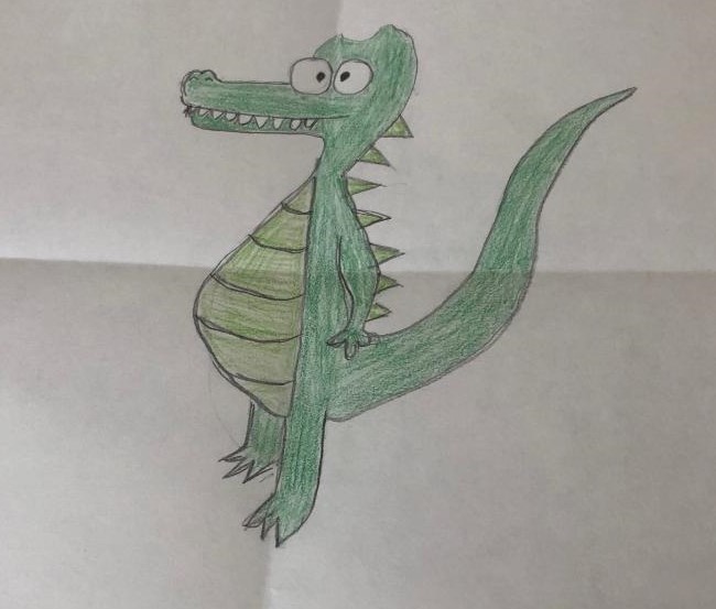 First, he suggested we draw an alligator cartoon figure (he knows our level of skill).