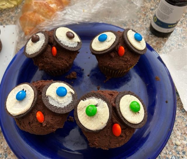 We’ve already sampled a bunch of cupcake bakeries for our ABC Life but this month we decided to try our hand at baking them. The recipe called for creating cupcake owls and since that involved Oreo cookies and M&Ms how could we not? They actually came out quite good and were fun to create.