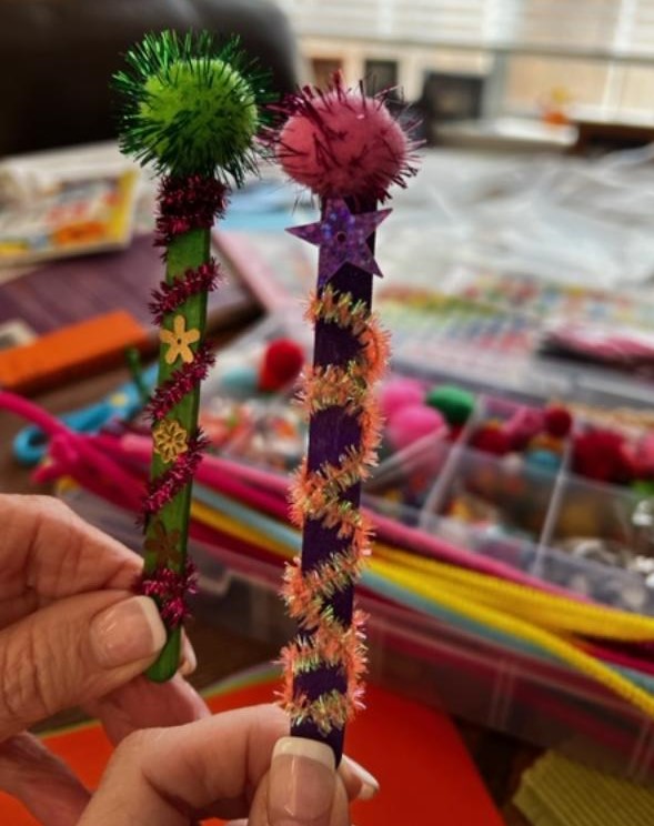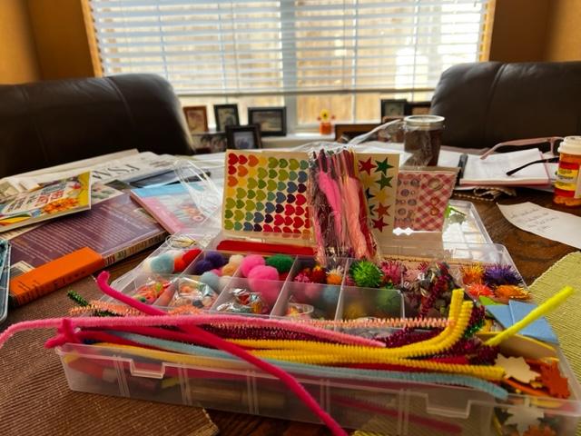 We channeled our inner child for our next reading challenge. Inappropriately giddy over the purchase of a box of craft supplies, we picked our favorites to use in this project. Actually proud of how they came out and will cause a smile when we read our next books.