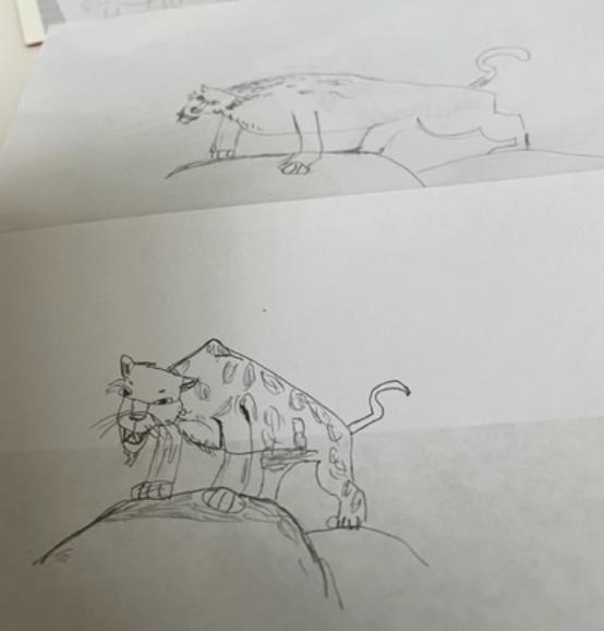 But we digress. This week we decided to see if there’s any hope for us. Laura had a book on how to draw so we chose a picture of a wild cat. The book had some steps leading up to the finished product, so we were somewhat optimistic. Alas, we think we won’t give up our day jobs (although we already have).