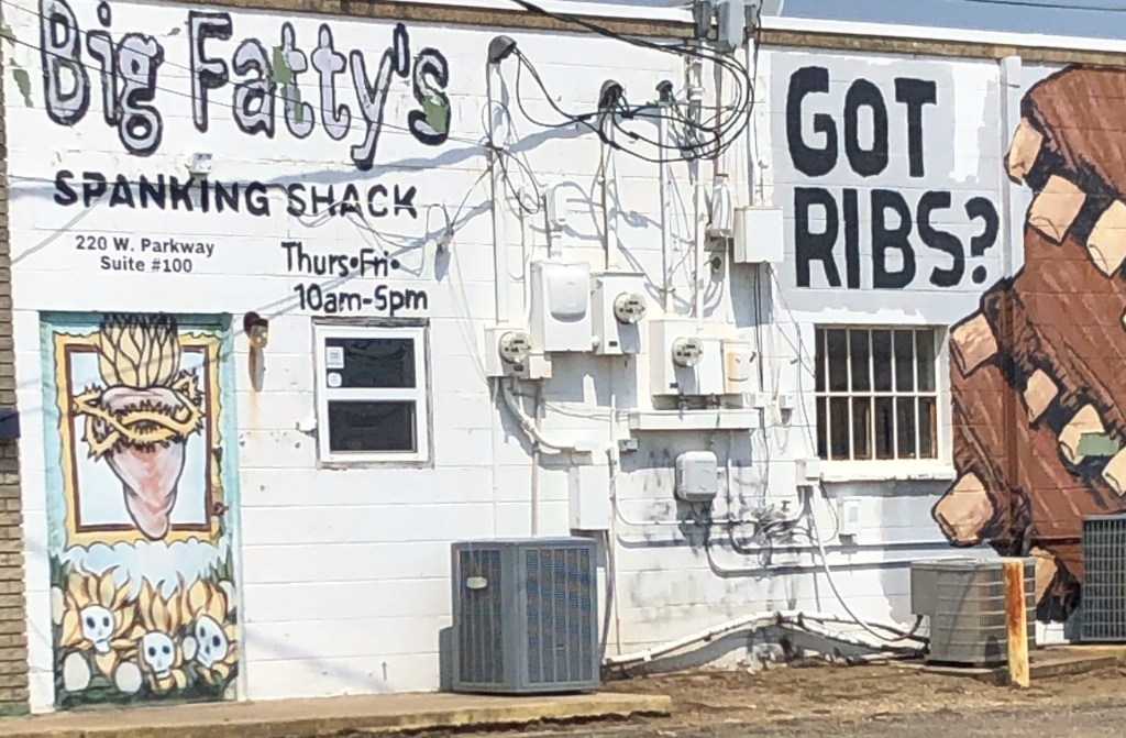 The first thing we noticed as we entered Denton was that they are very clever in their naming of businesses. Our all-time favorite was Stinky’s Smoke Shop. It immediately put us in a laughing mood and Barbara almost wanted to start smoking so she could patronize old Stinky. (Luckily, she held back the urge). Next came Arsenal Tattoo. We pictured the owners tattooing, not with an electric device but by taking a weapon from their Arsenal and shooting the ink pattern into the customer’s body. After passing Call to Arms Gun Shop and the Sleepy Lizzard we came to the runner up for best/funniest name at Big Fatty’s Spanking Shack. We hadn’t even left the car and we’re already in a great mood!