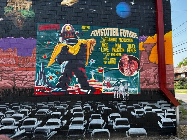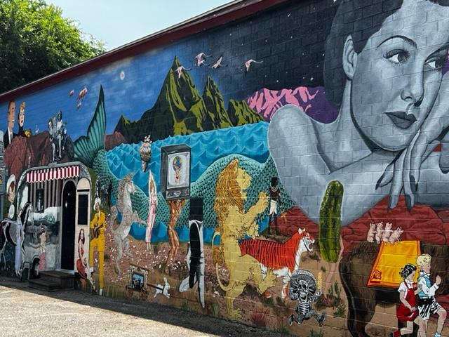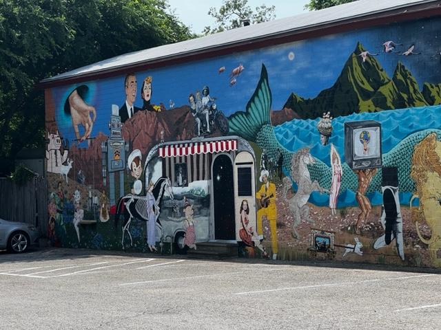 How do we resist that name? The owners had commissioned a mural in the parking lot and here are the results. The children sitting at the bottom of the picture are the owners’ kids and we got a kick out of the names of the actors once we realized they were More Love, Compassion, Tolerance and Joyfulness.