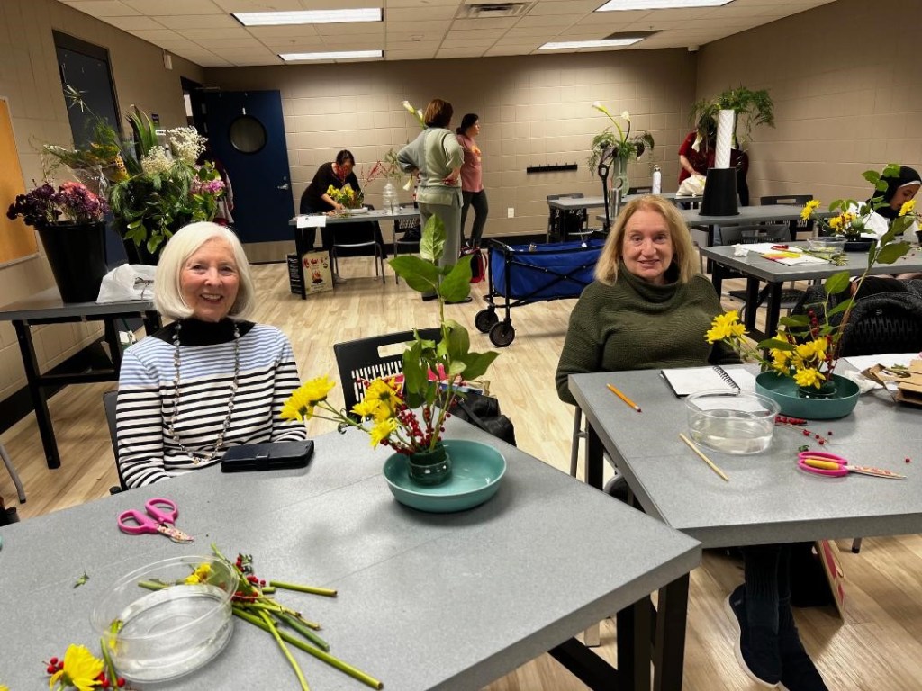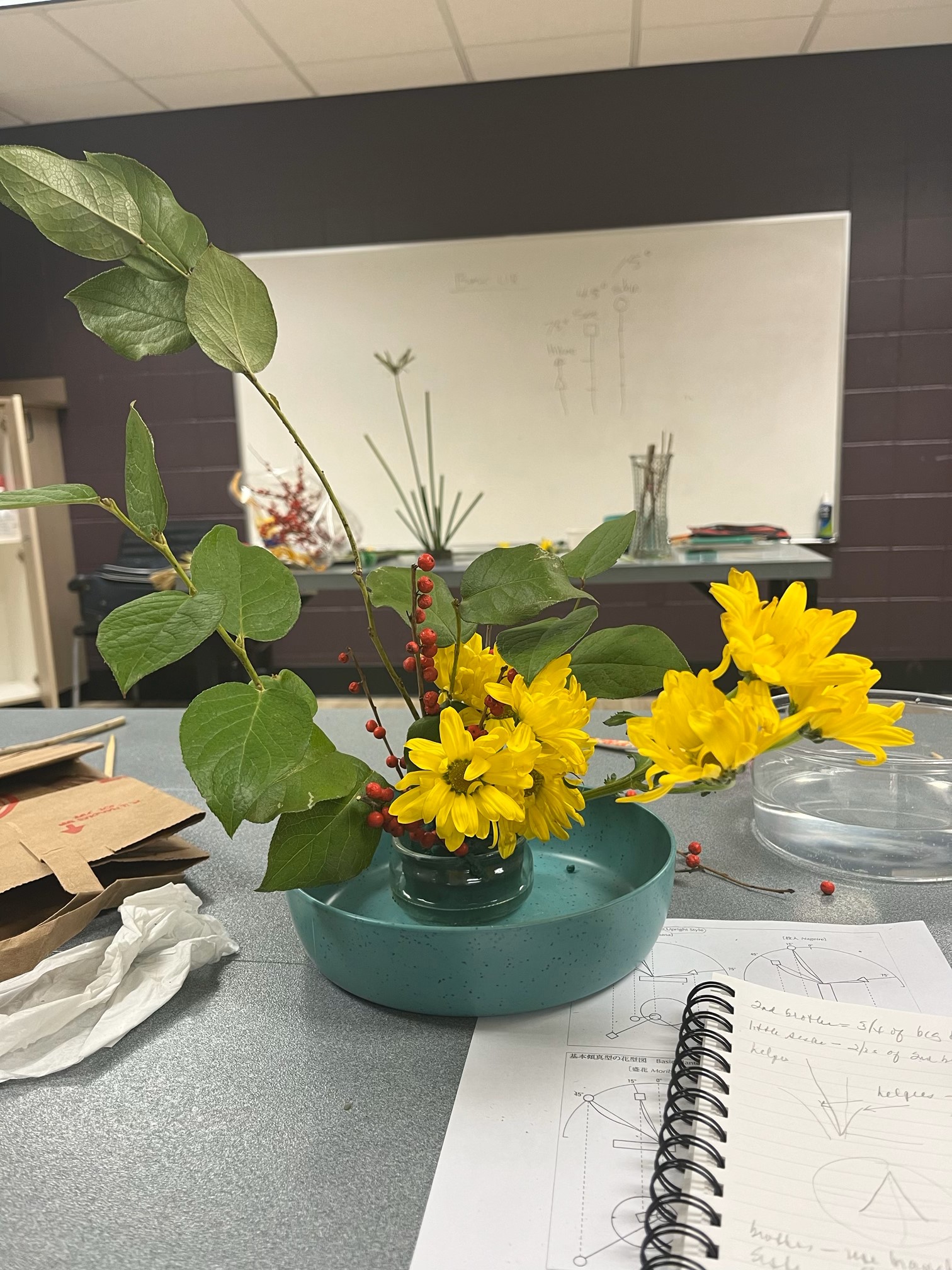 After our last “O” activity we were so impressed with the beautiful Japanese floral arrangements that, along with our friend Rosemary, we signed up for a two- session class. Our instructor, Ms. Maruda, handed out all the supplies and began the lesson. There are many, many rules to this form of floral arrangement and we struggled to take notes on how to place the “big brother, little brother and younger sister” in the foam she gave us. Harder than it would seem. But we did the best we could with the “skill” we had.