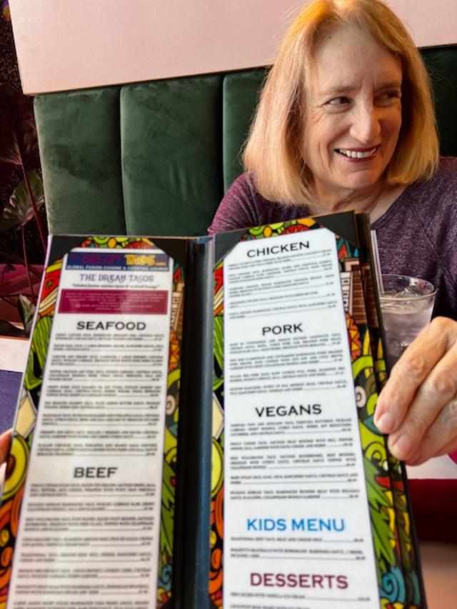 When we go to sleep, we occasionally have dreams. But not about TACOS. However, The Dream Tacos restaurant could soon make an appearance. Their tacos are definitely dream worthy! Chef Chetra is the talent behind the taste, as he has created global fusion tacos from the cuisines of France, Japan, southern BBQ, southern East Asia and Mexico. Barbara had the Beef Wellington Taco and Laura took the recommendation from our waiter who said enthusiastically that the Bulgogi Korean Marinated Taco is his favorite. Both tacos were reasonably priced and truly delicious. Plus, the decor was delightful and added a special touch to a great tasting experience.