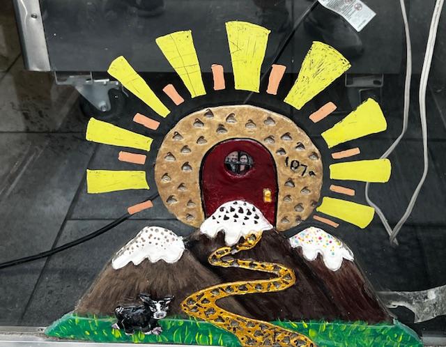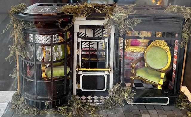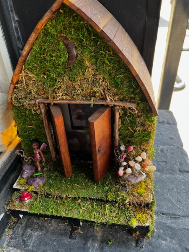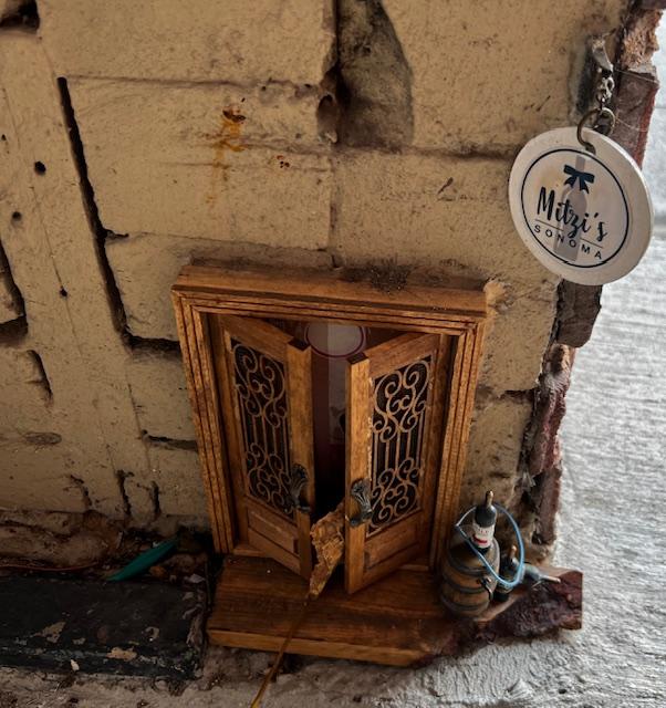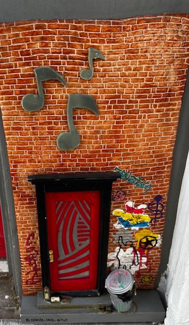 As it turns out there are 82 of them! They are about 7 inches tall. Some have functional elements such as doors that open or mailboxes, some represent the store they are in front of. Andrew Jones, the Cultural Director of McKinney’s Cultural District, said that he was inspired by seeing 3 stores that had “fairy doors.” He and a local artist, Beth Fields, collaborated on the idea. Since it was such a hot day, we didn’t search for all 82 doors but we did see about 16-20. Here is a sampling of some of our favorites.