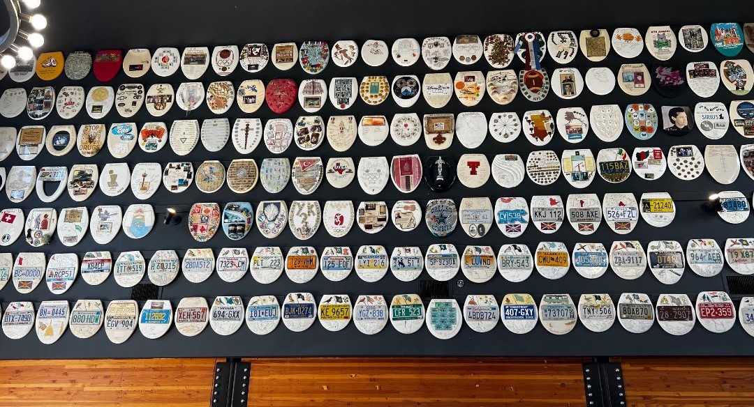 There are museums for just about everything but it’s doubtful whether you would think there would be one about toilets! So when we heard there was a Toilet Seat Art Museum nearby, we naturally had to check it out. (There was also once a museum in Madison, Wisconsin about toilet paper, but it’s now defunct. Shucks!) The Toilet Seat Art Museum showcases more than 1,300 toilet seats – all of which are the life’s work of Barney Smith.